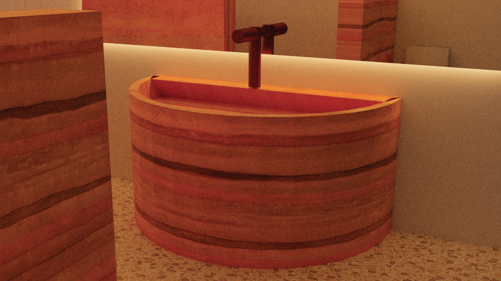 We were particularly inspired by Rammed Earth for this project. Rammed Earth is ancient technique of building walls through compacted layers of local earth, that gives a natural and warm feeling to a space.